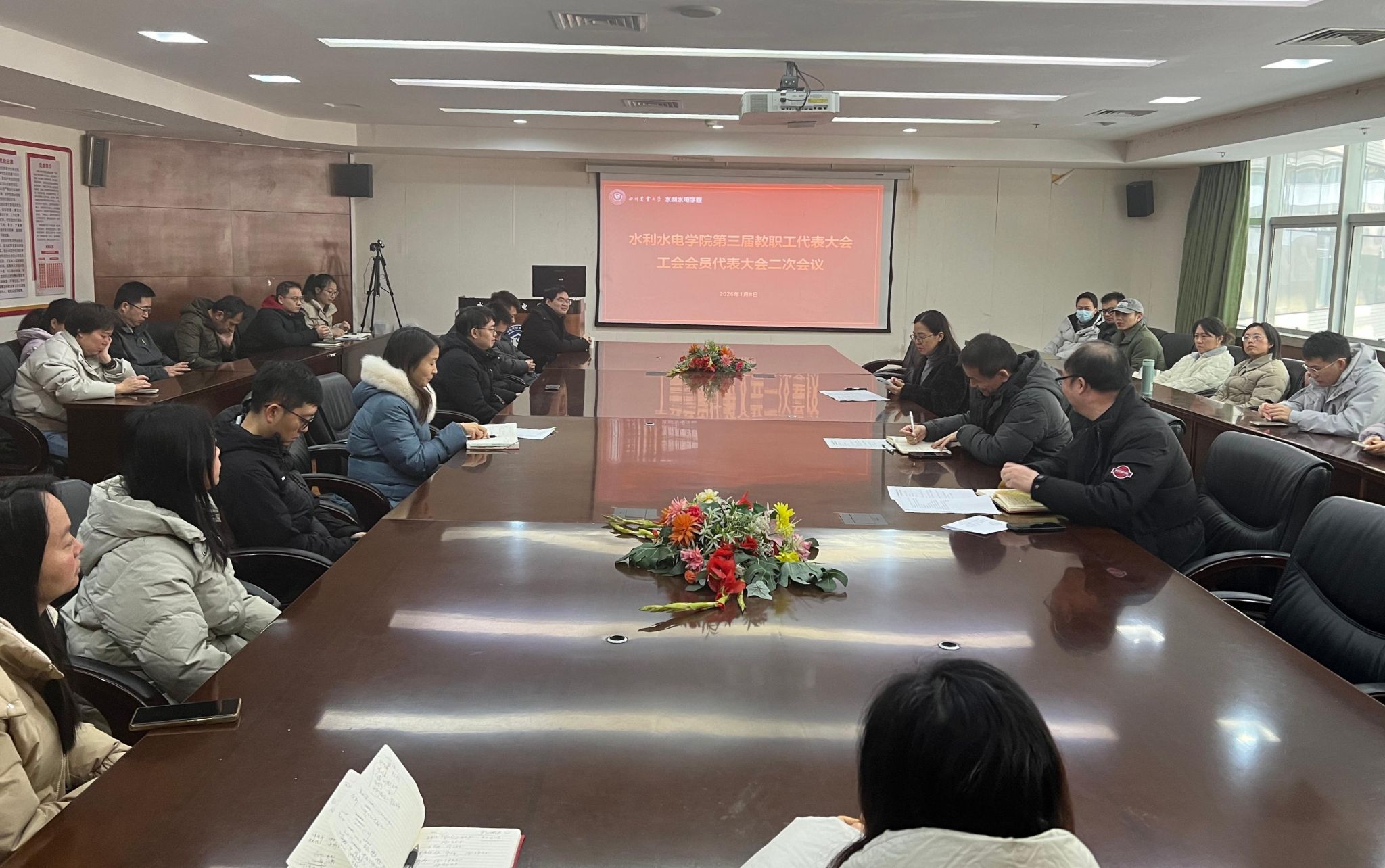 1月8日上午,公司第三届教职工代表大会工会会员代表大会二次会议于综合楼314会议室召开,公司全体教职工出席会议。此次大会由公司教代会主席杨萍主持。