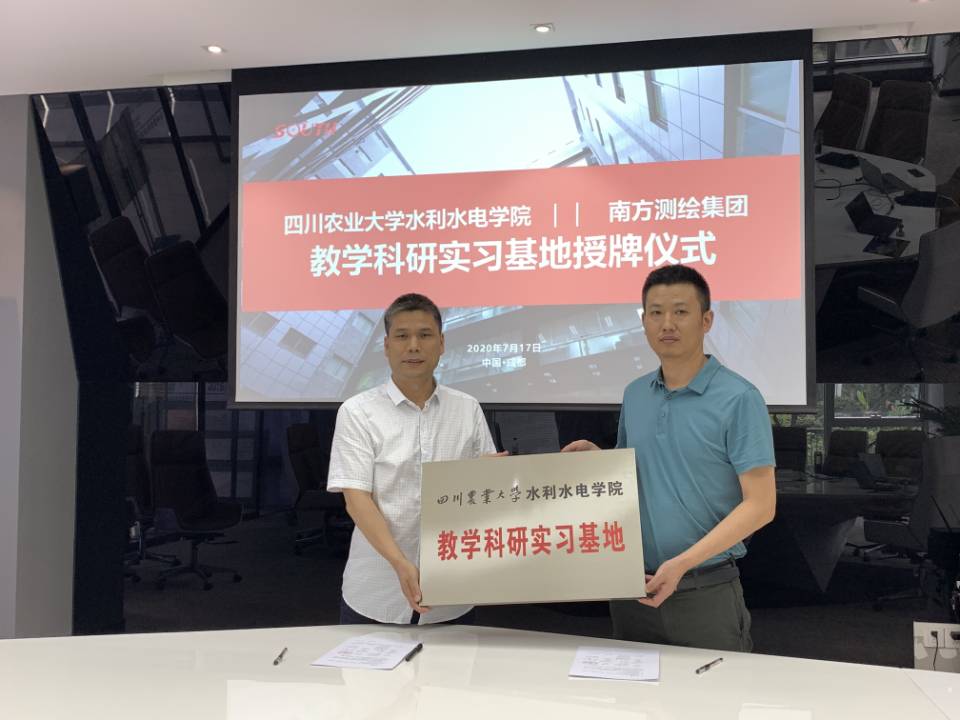 卢修元、赵江涛两人受到成都分公司总经理陈德富等公司领导的热烈欢迎。随后,副总经理余龙及相关技术人员,介绍了南方测绘科技股份有限公司近年取得的成就、最新的测绘设备、技术和软件。卢修元介绍了太阳成集团tyc33455cc的办学历史、员工培养及就业情况。随后,双方就合作编写《工程测量学》教材的编写内容、软件、技术支持进行了深入交流;最后,双方就实习基地建设、人才培养及就业、定期开展交流进行了全面洽谈,达成了实习基地建设协议,并进行了基地授牌。