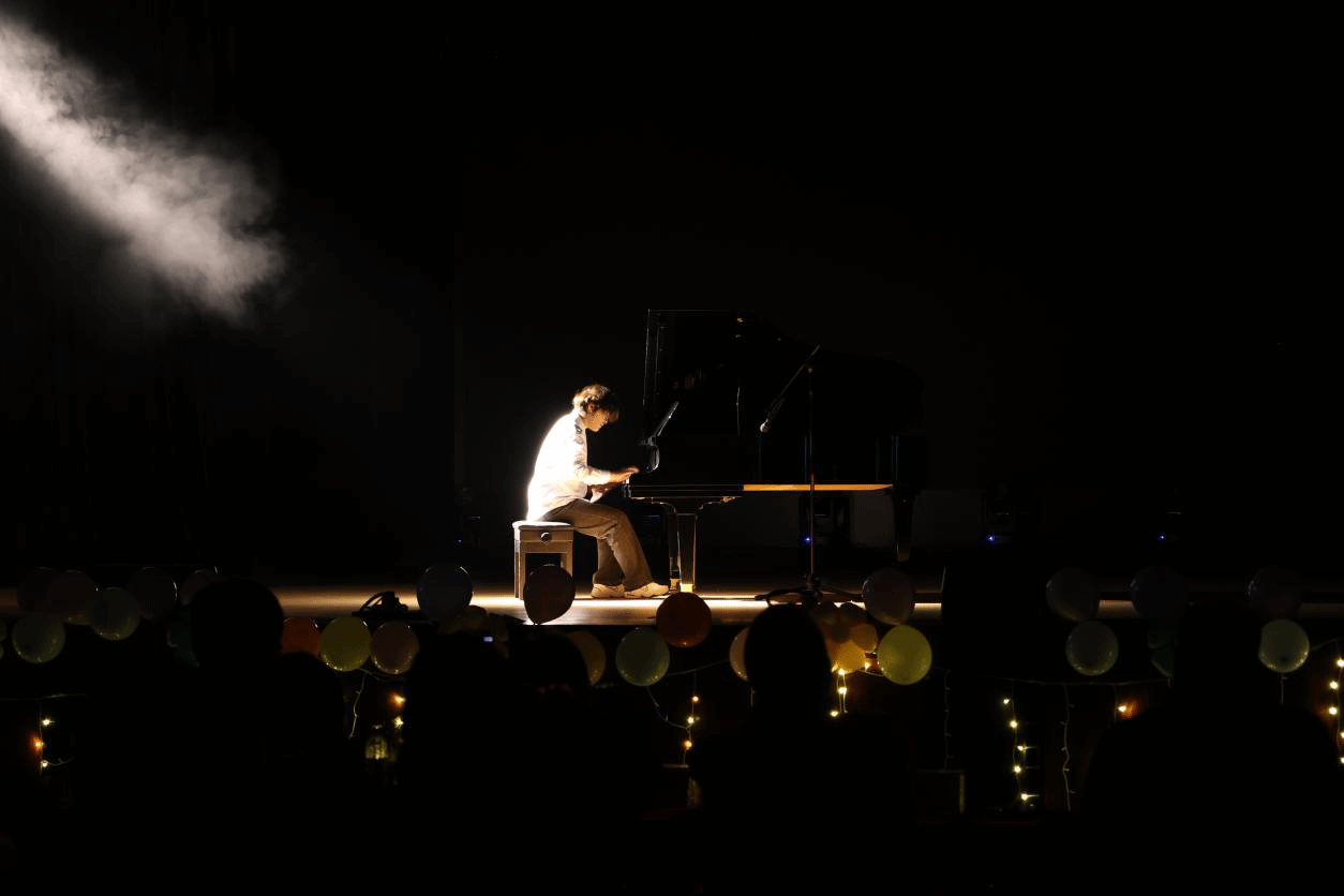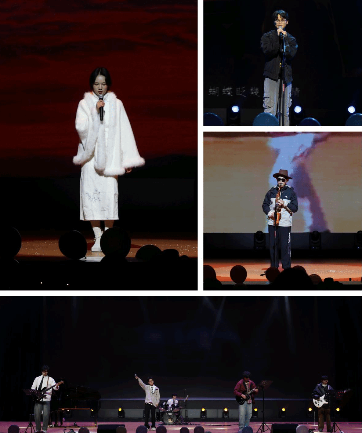 稍作休息,精彩依旧。彝族民歌弹唱《带我到山顶》表达了在外的学子对故乡与母亲的思念,歌词“夜里妈妈声声口弦呼唤浪迹天涯的游子”更是动人;萨克斯独奏《西班牙斗牛士》热烈奔放,钢琴独奏《克罗地亚狂想曲》深沉激昂,不同的艺术形式碰撞出精彩的火花,燃爆全场。