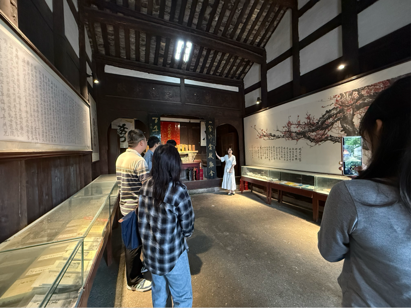 科技服务过程中,在车岭镇干部带领下,团队一行深入农田产区,采用专业设备对耕地土壤进行多点采样,同步使用便携式检测仪器分析土壤酸碱度、养分含量等指标。采集的多处样本将送回公司实验室开展理化分析,形成针对性的土壤改良方案,为当地粮食作物绿色种植提供数据支撑。随后,团队一行还前往吴之英故居进行文化调研,在讲解员引导下,师生们参观了故居内保存的文献手稿、历史文物,深入了解晚清经学家吴之英的学术成就与文化贡献。团队成员结合专业所长,就故居周边环境整治、文旅线路规划提出建议,推动“科技助农+文化研学”融合发展模式落地。