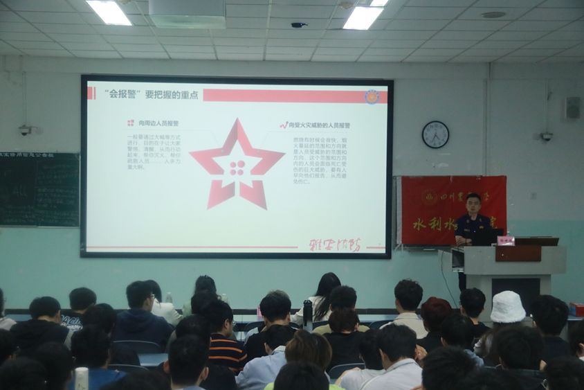 为进一步筑牢国家安全人民防线,加强员工维护国家安全的意识与增强消防安全知识技能,4月18日,在公司保卫处的指导下,公司于10教A303举办“安全伴我行”国家安全宣传教育讲座,邀请雅安市消防支队综合指导科科长徐世超担任主讲。讲座上,徐世超重点讲授了“一懂三会”的消防知识要点和注意事项,详细讲解了如何区分“水泵接合器”与“室外消防栓”、如何在火灾发生时机智自救、如何正确使用灭火器以及区分灭火器种类等内容,让员工对消防安全有了更清晰深入的理解与体会,于员工心中播撒了消防安全之种,共同营造了一个安全稳定、和谐美好的校园环境。