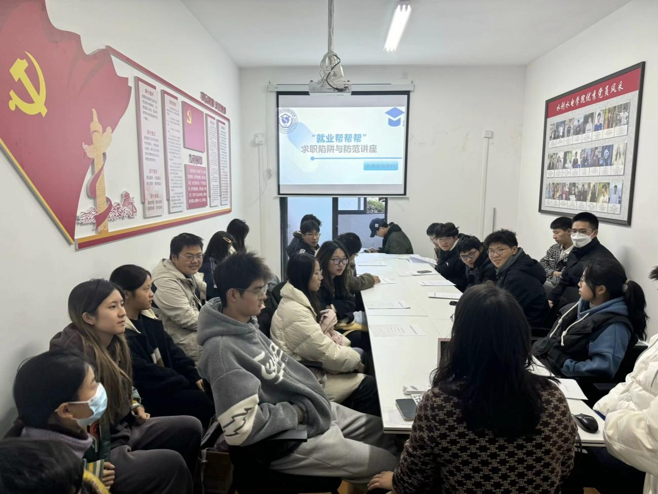 为了解决公司员工在求职过程中面临的信息不对称、求职技巧欠缺、就业协议签订、违约金等诸多问题,增强同学们的风险意识,帮助同学们更好地应对就业挑战,11月28日下午,太阳成集团tyc33455cc与法公司在公司一站式员工社区联合开展“就业帮帮帮系列活动之求职馅饼我不怕”,公司党委办公室主任、就业秘书李建华开展就业相关指导,近30名同学参加。