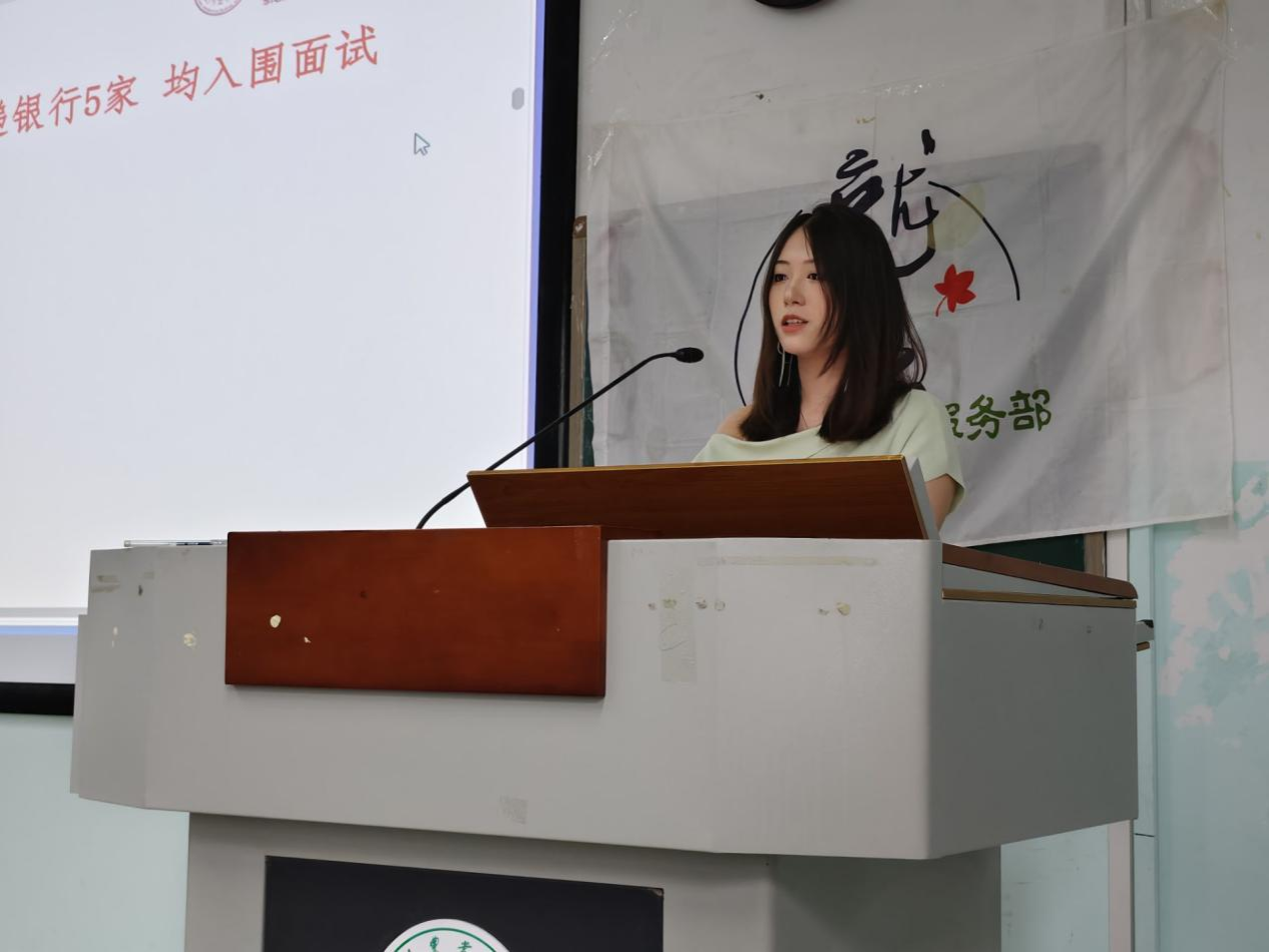 “我的大四历程,坎坷又迷茫。”学习成绩优异,员工工作经历精彩的刘伊却讲述了自己大四一学年从保研失败、求职多次碰壁、考公面试失利到跨界选择比亚迪整个过程,向同学们逐条厘清求职过程中常见的痛点。此外,她还强调:“简历投递石沉大海是常态,不要焦虑,不要自我否定。”