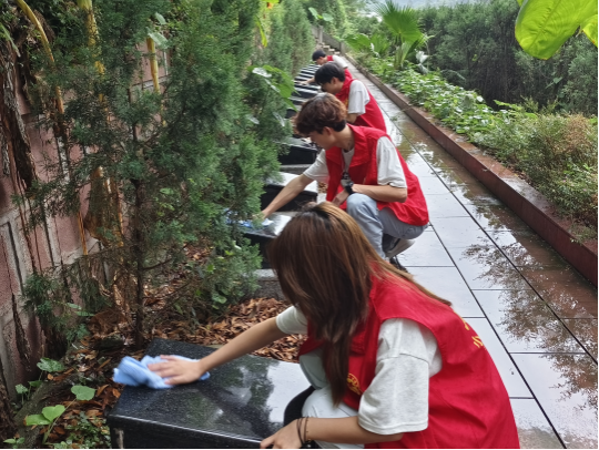 活动当日,夏日的阳光洒在烈士陵园的松柏间,增添了几分庄严肃穆。公司党工巴士社会实践团队成员们身着统一志愿服装,怀揣着崇敬与追思,有序踏入这片承载着厚重历史记忆的墓区。在烈士墓区,成员们迅速分工,手持清洁工具,开始细致地擦拭墓碑。每一下擦拭,都饱含着对先烈的敬意,大家轻轻拂去岁月落在墓碑上的尘埃,让那些刻着英雄姓名与事迹的碑身,重新焕发出整洁的光泽。擦拭过程中,成员们或驻足凝视碑文,或轻声交流先烈故事,在追思中深刻感受着革命先辈为了家国大义,舍生忘死、奋勇向前的崇高精神,仿佛能透过墓碑,触摸到那段热血沸腾、砥砺奋进的历史。