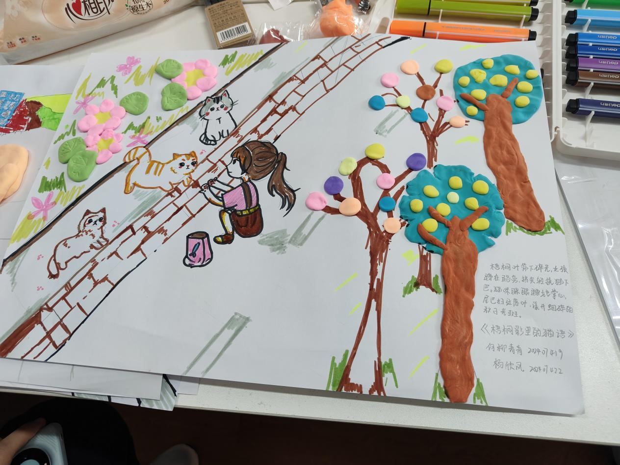 活动当天,8支队伍早早抵达现场,带着提前拍摄或速写的校园素材——有的定格了校园里的梧桐大道,有的描绘了风雨中保卫工人坚守岗位的身影,还有的记录了投喂小猫的时刻。