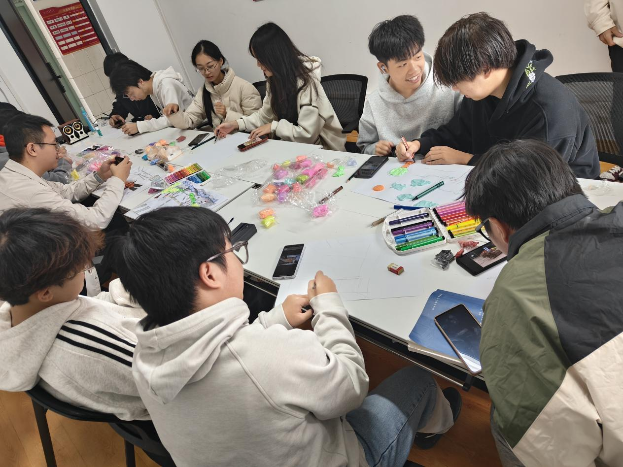 随着活动开始,各小组迅速分工协作,有的勾勒线条、有的调配色彩,水彩的清新、素描的细腻在画纸上一一呈现。现场氛围热烈而专注,画笔摩擦纸张的沙沙声、队友间轻声的讨论声交织,每一笔都饱含对校园生活的热爱。经过数小时的紧张创作,8幅主题鲜明、充满温度的画作全部完成,每一幅都成为校园美好瞬间的生动缩影。