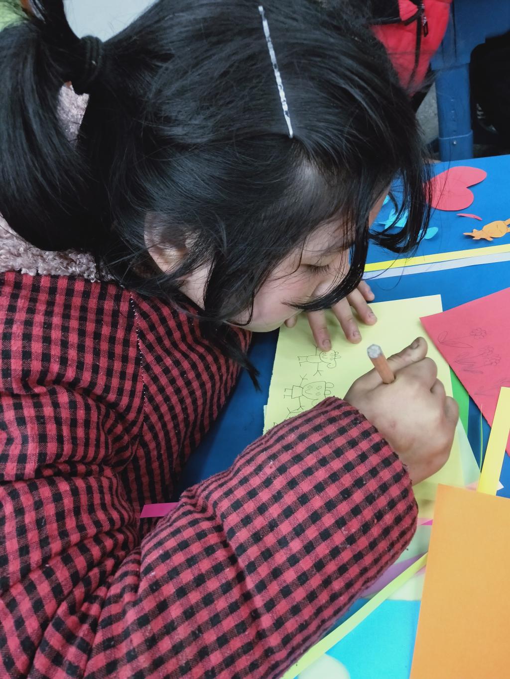 活动期间,志愿者们纷纷使出自己的“看家本领”,在孩子们期待的眼神中展示了手工剪纸的动作流程。小青蛙、小熊、飞机……随着一件件精巧的手工作品逐次呈现,志愿者们信手拈来的娴熟动作,愈发吸引起了孩子们的兴趣和专注。孩子们也跃跃欲试,开始自己动手参与折纸游戏,并将制作的一件件手工作品送给志愿者们。此外,一些志愿者们还陪孩子们一同画画,用画笔勾勒出稚嫩而可爱的线条,在纸上畅想出心中最美好的景象。