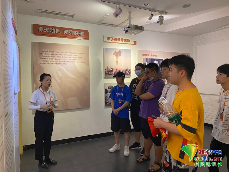图为解说员为成员讲解原子弹研究历程。中国青年网通讯员 李海生 摄