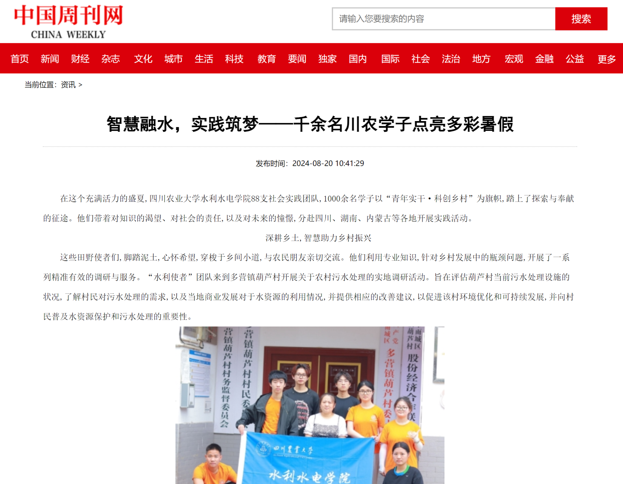 从优化农村水利条件到发展文旅推进乡村振兴,从推广农业科技到提升农民技能水平,每一个足迹都见证了青春的力量与智慧的火花。团队成员们不畏艰难,深入山区,为村民们解决了污水净化处理的难题,用实际行动诠释了青年学子深耕乡土,用智慧助力乡村振兴。