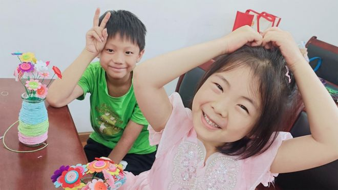 (图:孩子们独立动手制作纽扣花)