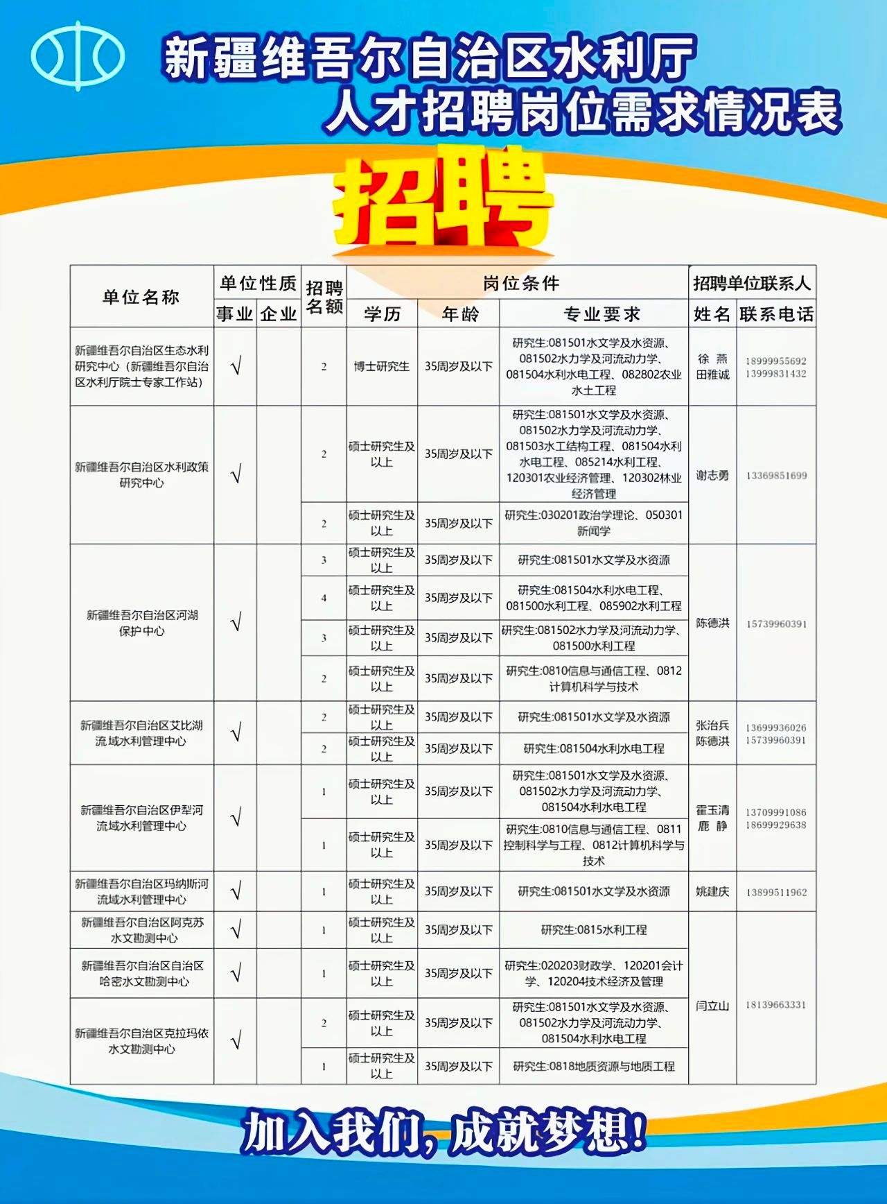 新疆维吾尔自治区水利厅所属事业单位2025年度人才招聘公告